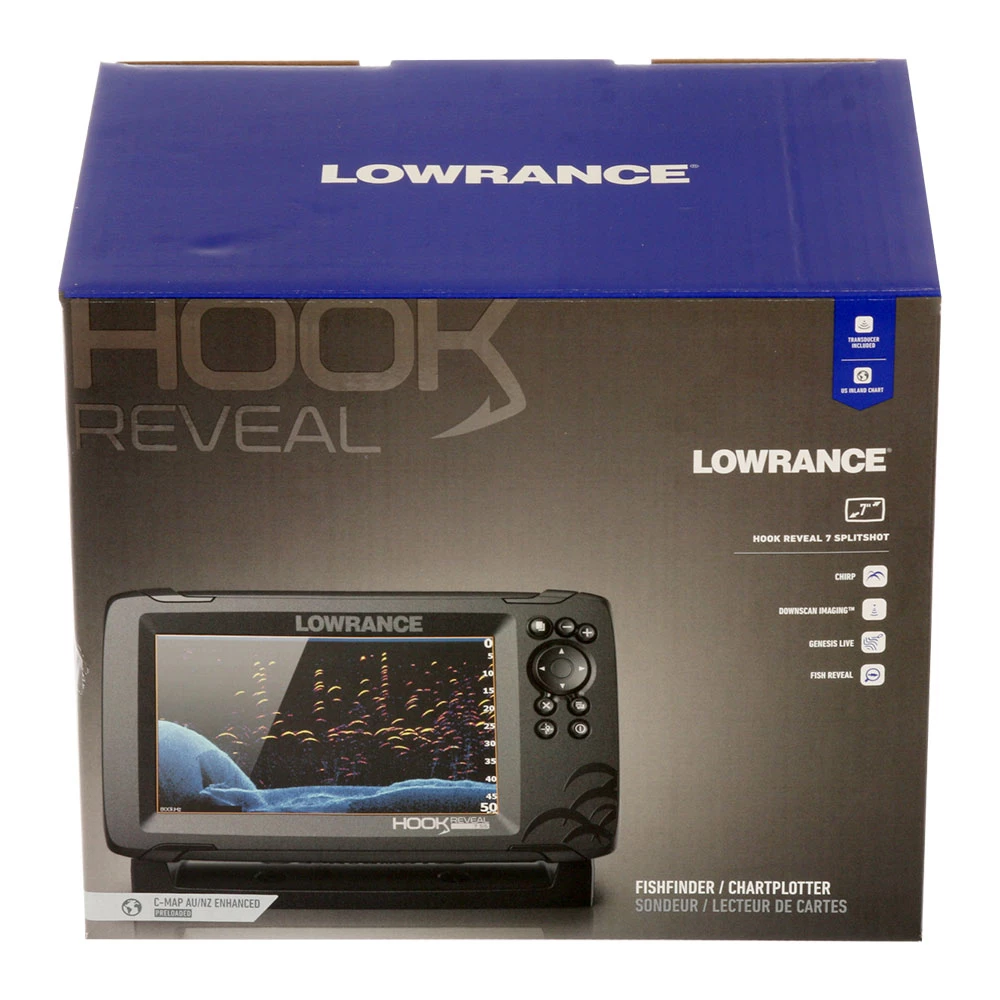 The all-new Lowrance HOOK Reveal 7 GPS/Fishfinder makes fishing easier, delivering powerful performance with proven fish-finding tools including, Autotuning Sonar, DownScan Imaging, improved deep water performance and now FishReveal, which makes fish easier to see by combining the benefits of Lowrance CHIRP sonar and DownScan Imaging on one display. Whether you’re fishing a local spot or unfamiliar water, find the best fishing areas with preloaded Australian and New Zealand Coastal mapping from C-MAP or map uncharted water – in real time – with C-MAP Genesis Live.